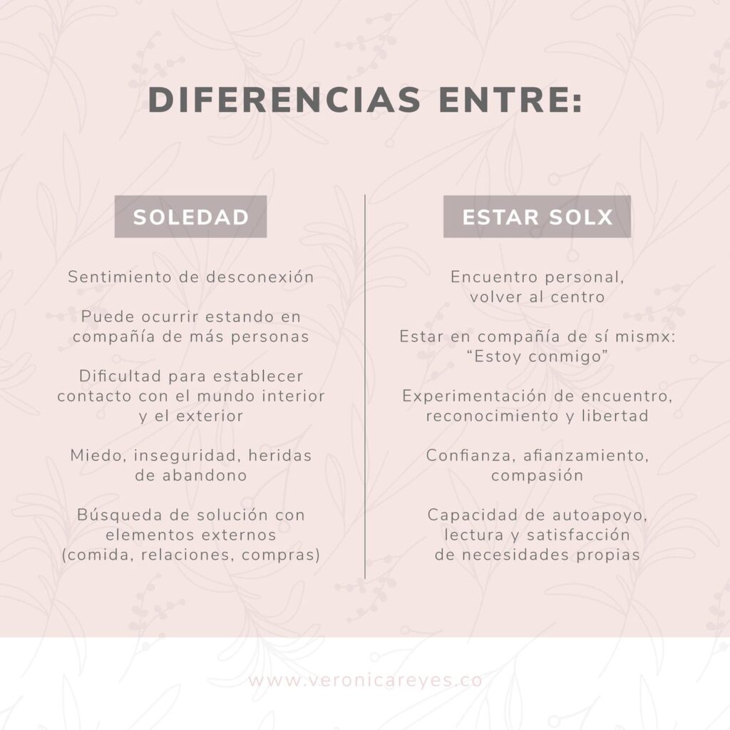 Poder resignificar la soledad, es decir, experimentarla como lo que es, sin sumarle a la sensación la fantasía de un futuro de rechazo, abandono y demás pensamientos innecesarios; nos va a ayudar a suavizar el juicio que se tiene ante los periodos de tiempo que tengamos solxs y poder aprovechar estos como oportunidades de autoconocimiento, sanación y eventualmente disfrute.